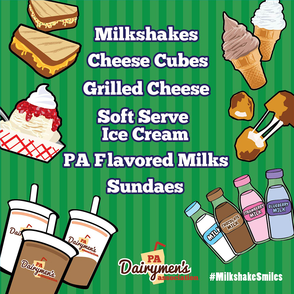 - The “America250PA PA Dairymen’s Milkshake Flight” and the other legen-DAIRY milkshake flavors including chocolate and a mix