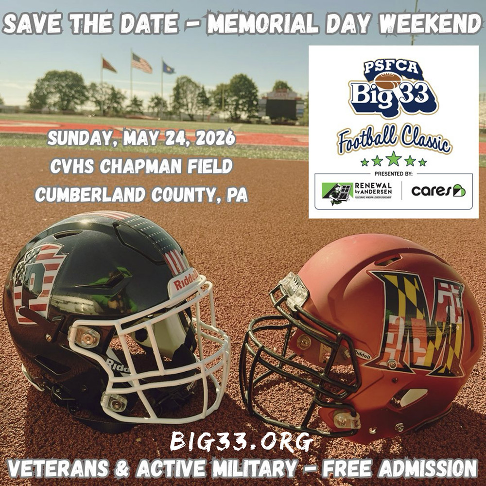 The Pennsylvania Scholastic Football Coaches Association (PSFCA) proudly presents the 69th Big 33 Football Classic, presented by Renewal by Andersen of Central PA. This highly anticipated game will take place on Sunday, May 24 at Cumberland Valley High School’s Chapman Field in Cumberland County, PA, with kickoff at 6:30 p.m.